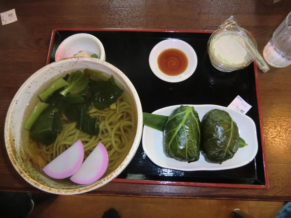おすすめは、「真菜定食」、細いうどんは、真菜を錬り込んでいる。シコシコつるり。 まいうー。アツアツの、「めはり」もグー。アイスも真菜入り。これで、700えん。 |