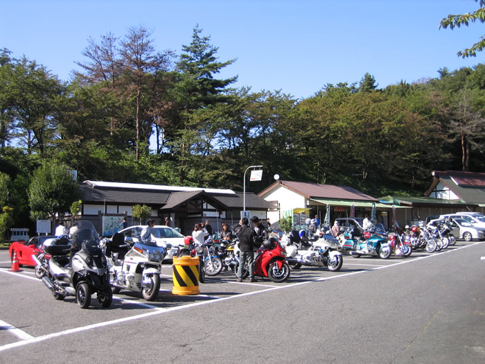 奥琵琶湖パークウエイの駐車場・・・バイクが占領 |