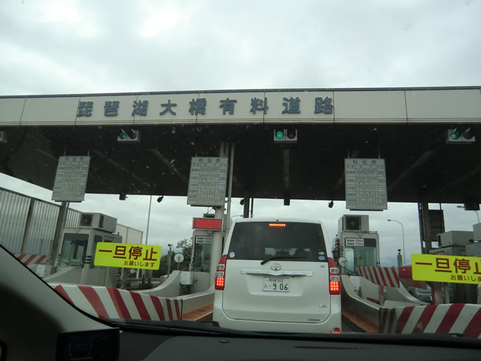湖周道路・烏丸半島交差点ローソンでトイレ休憩して、琵琶湖 大橋を渡る。 料金は普通車200円、二輪車150円です。