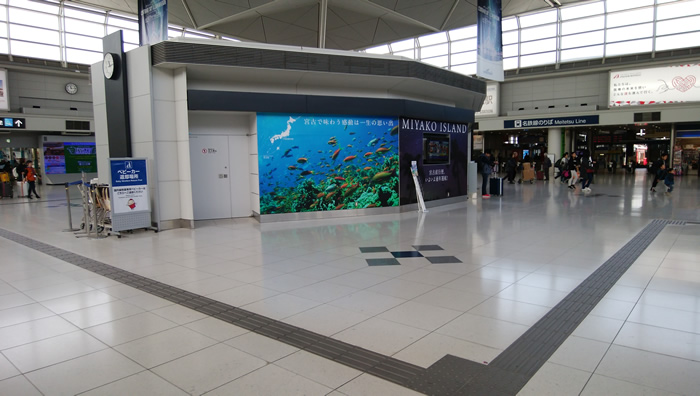宮古島直行便が通年開始の宣伝パネルだ。