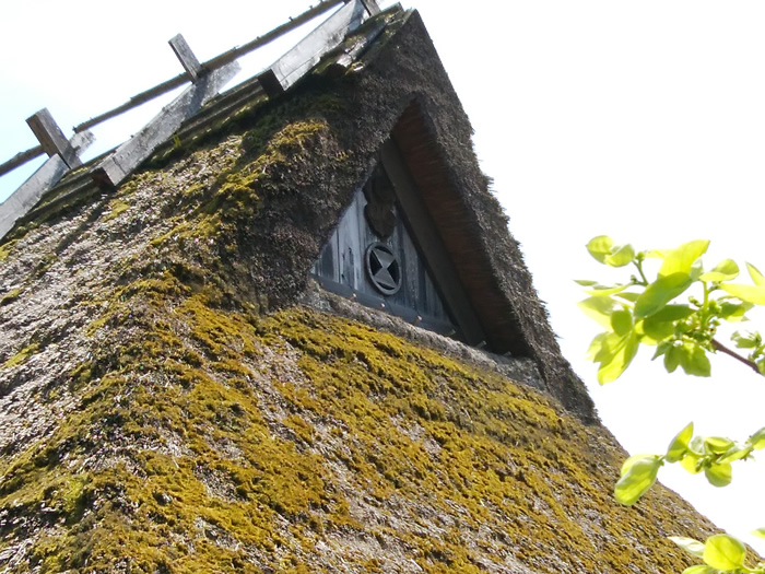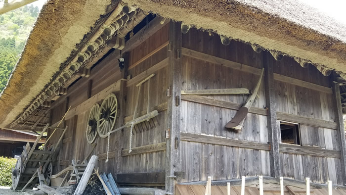 屋根の三角の所には、家紋が組み込まれている・・美山民俗資料館