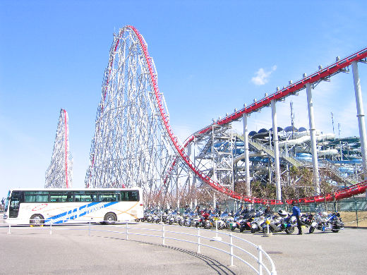 駐車場にて。 ジェットコースターは迫力あるね! |