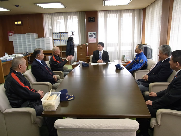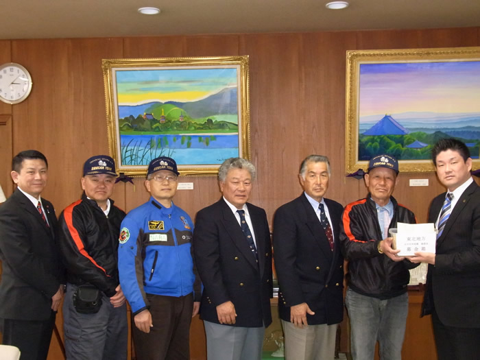 4月3日に名阪国道・針テラスでの東日本大震災支援募金活動の募金を4月 11日、奈良市長室で募金の引き渡しを行いました。 草ハーレー会の会長、 副会長、当クラブの会長のやぶさん、岩さん、やなさんが、仲川奈良市長と懇 談、募金を引き渡しました。