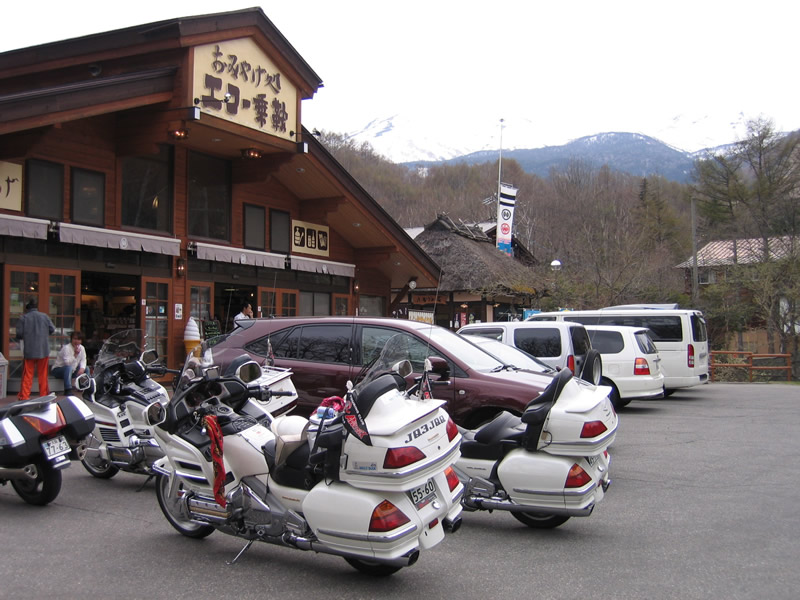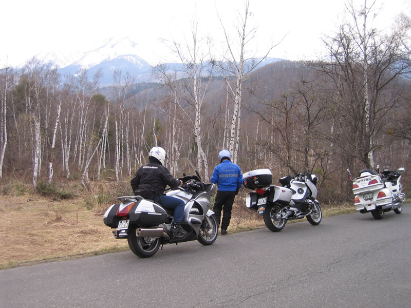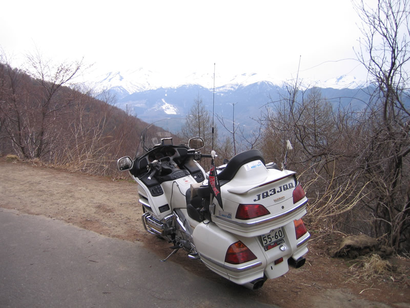 奈川から乗鞍高原スーパー林道をGL1800で攻める・・・ここは、標高1624M 正面は雪をかぶった乗鞍岳です