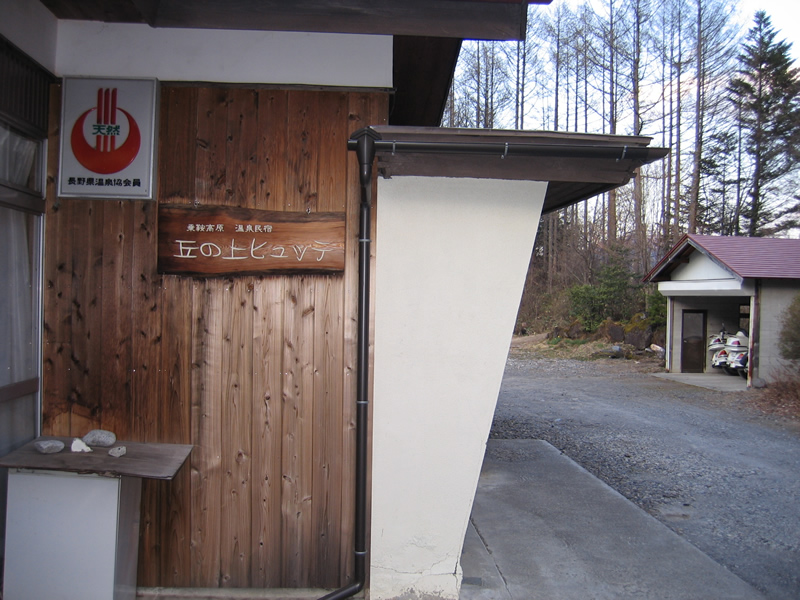 やっと、お宿「丘の上ヒュッテ」に到着です。お疲れ様。車庫にバイクを入れる。 自宅から10時間20分! |