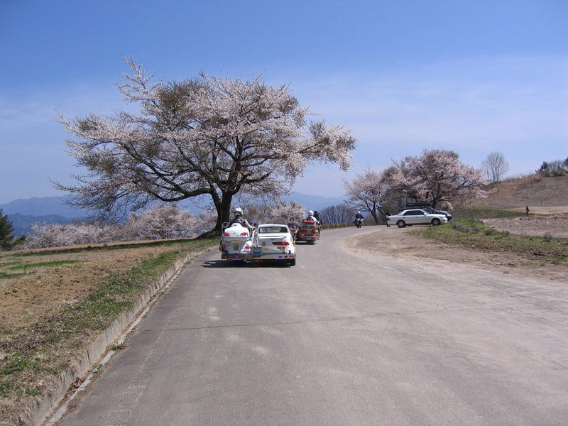 大 大峰高原は、サクラが満開です。サイドカーがマッチしてます。