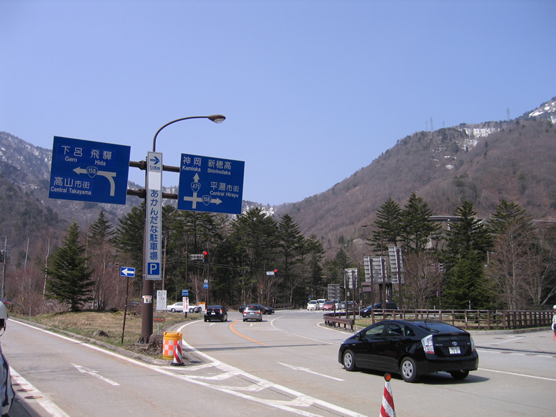 残雪の野麦街道を奈川渡ダムR158へ、下ります。 乗鞍高原温泉への林道は積雪 のため閉鎖。 |