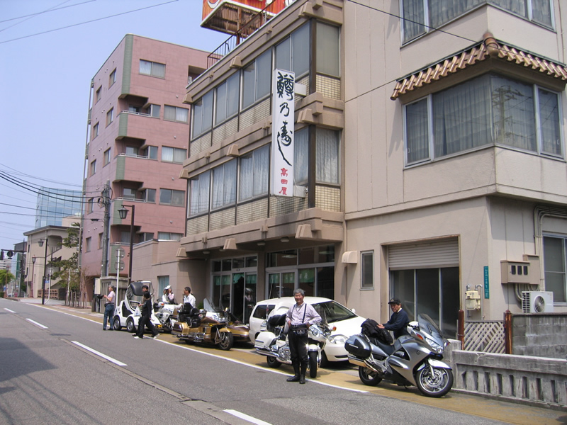 宿を共にした常連さんに2台のサイドカーの試乗会をプレゼントする。 8時40分出発です。目標・・お昼の「海鮮どーん」と富山の「鱒寿司・・高田屋」