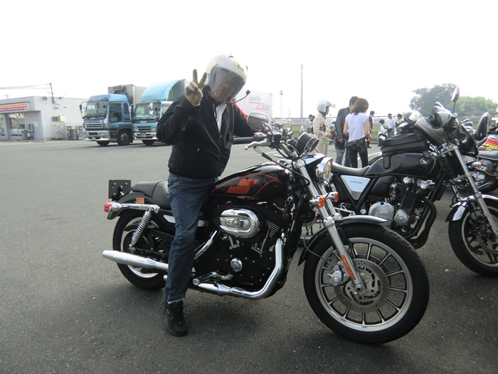 Rハーレーを乗り換える タネちゃん。
