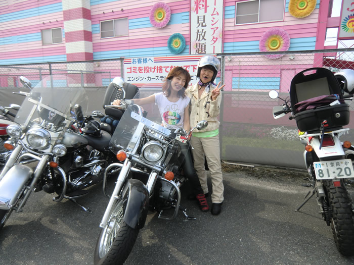 SUNちゃんのシャドー750にまたがる、ともちゃん・・私にも運