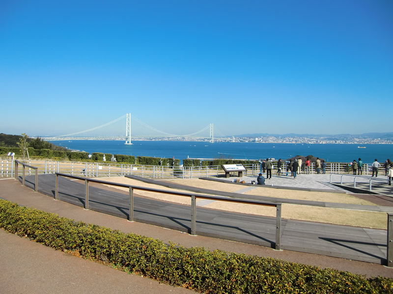 吸い込まれるような青空!!神戸淡路鳴門自動車道の淡路ハイウエイオアシスで明石海峡大橋を眺める