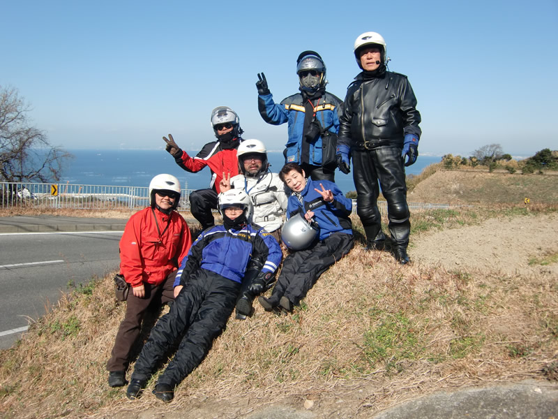 あわじ花さじきからパルシェへの途中、海の見える景色の所で記念写真 |