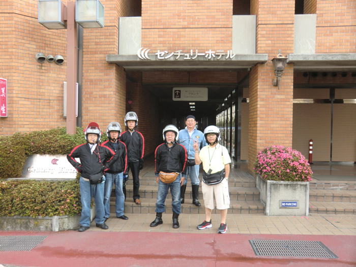 出発準備・・・ホテルの前で。 |