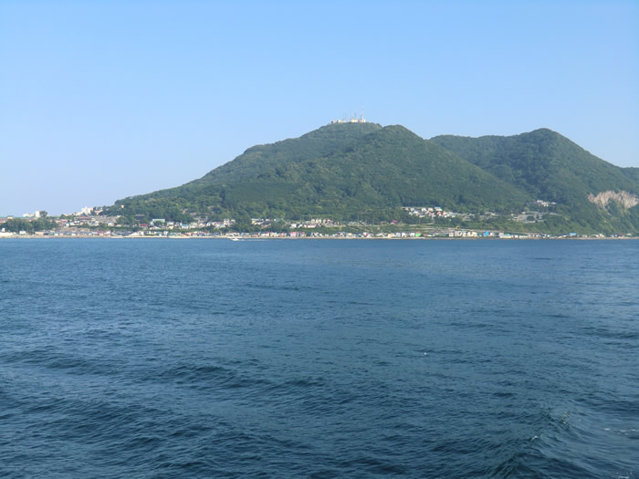 ![]() 百万ドルの夜景がすばらしい函館山がすぐ近くに迫る。快晴だ。 |