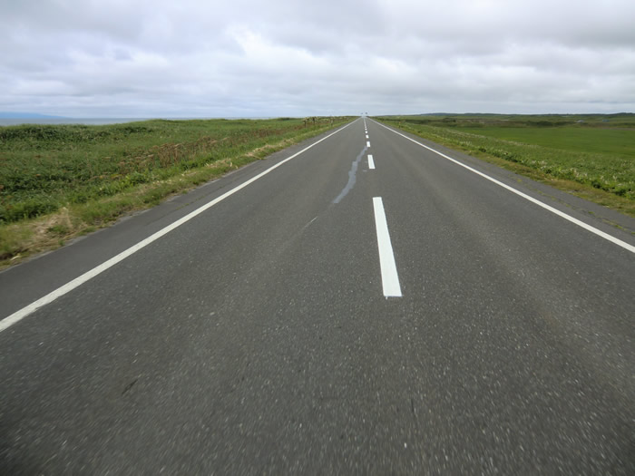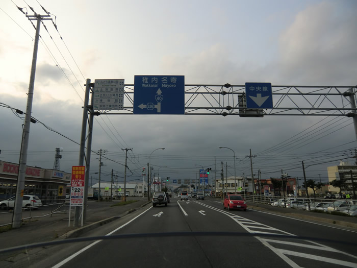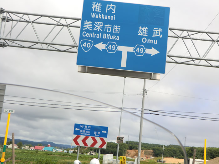 道路案内標識に「稚内」の案内。随分遠くまで来たもんだ。 |
