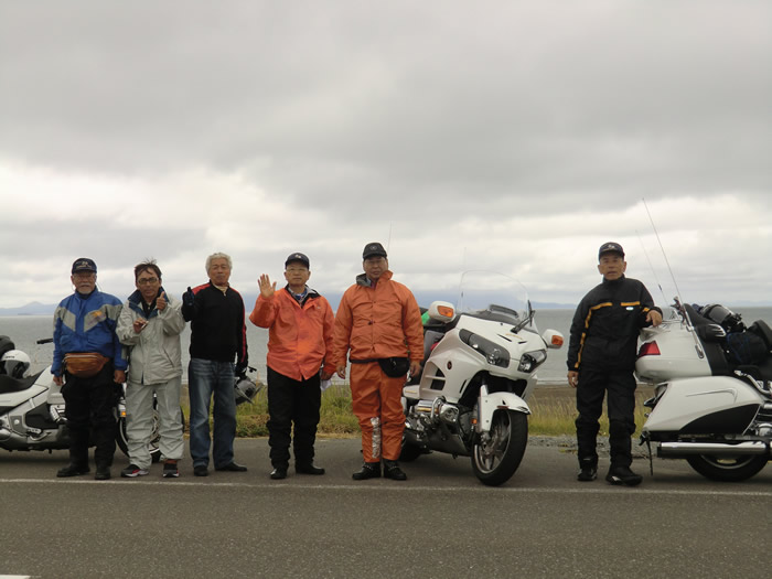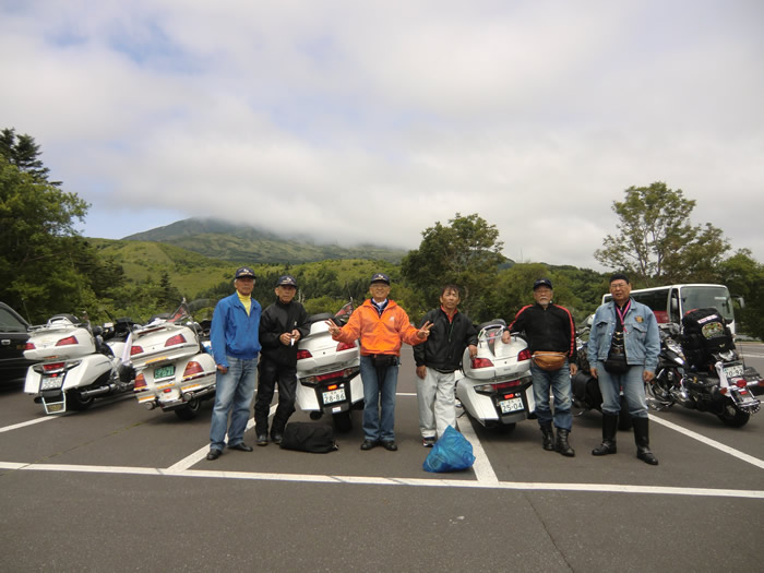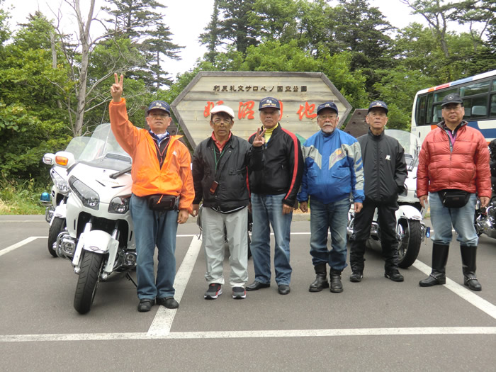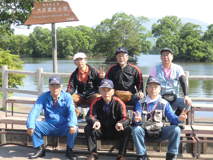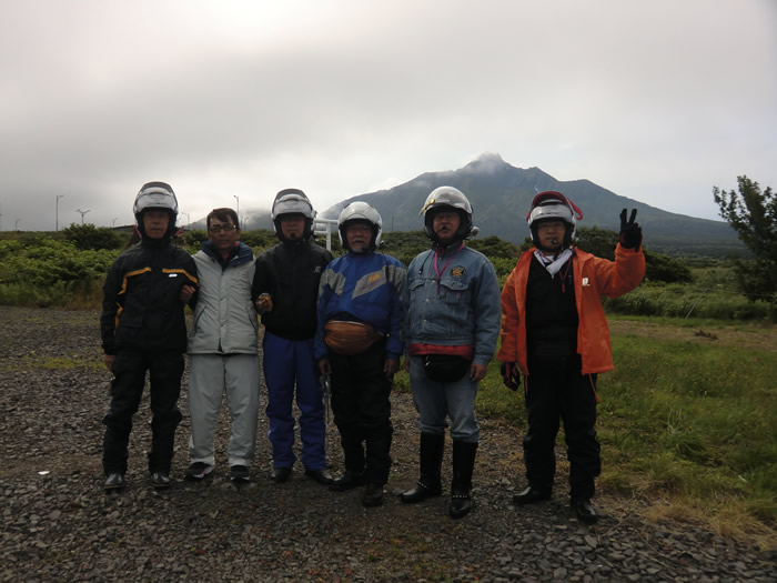 ![]() 雲がかかった利尻山をバックに記念写真。 オタトマリ沼にて。ここで利尻昆布をゲット。 |