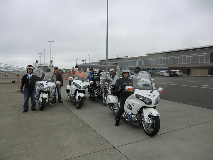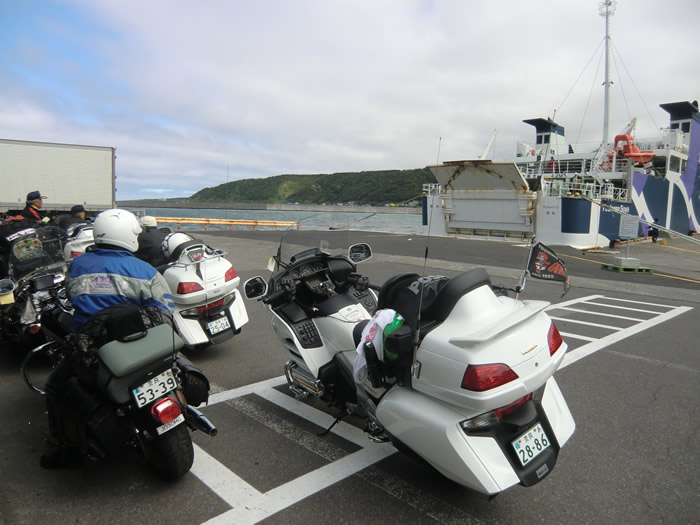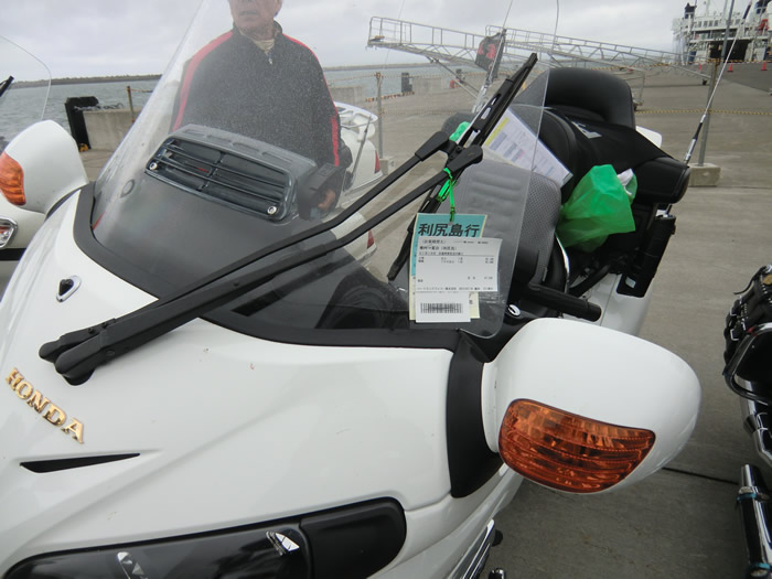 ![]() 利尻島の鴛泊港から稚内行のフェリー乗船手続きをすませ、乗船を待つ。 pm2:05 出航、pm3:45稚内港着だ。 |