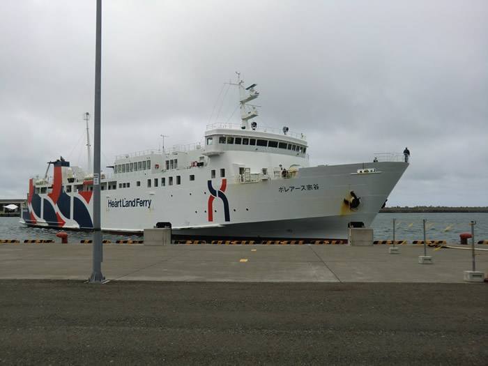![]() フェリーは、ハートランドフェリーの「ボレアス宗谷」だ。 pm4:05稚内港を出港し pm5:45に利尻島の鴛泊(おしどまり)港に接岸する。 1時間40分の乗船だ。 |