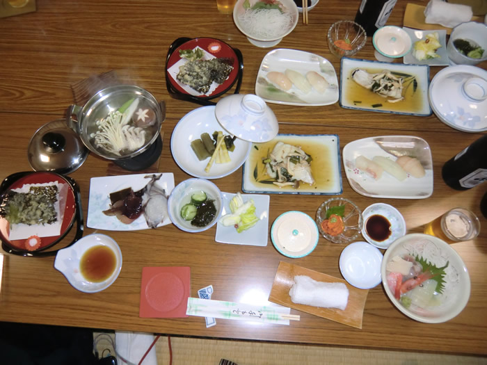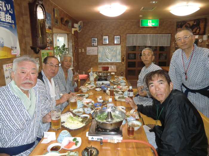 ![]() お待ちかねの夕食は、タコしゃぶGUー、毛ガニもGU−.。いただきまーす。 |