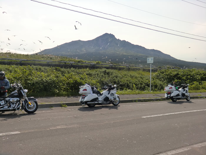 ![]() 利尻島のビューポイントの一つ、新湊では、カモメが乱舞していた。 利尻山の万年 雪が見えました。 |