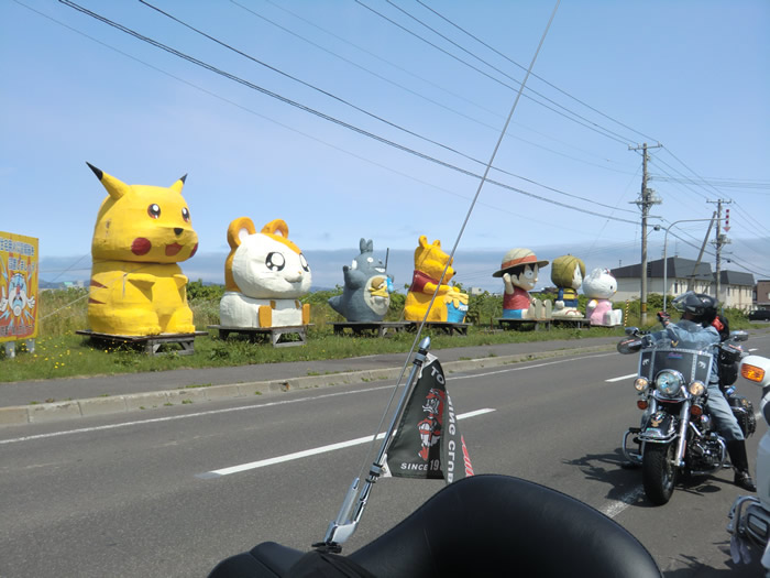 ![]() 道路端に大きなキャラクターが歓迎。思わず立ち止まる。 |