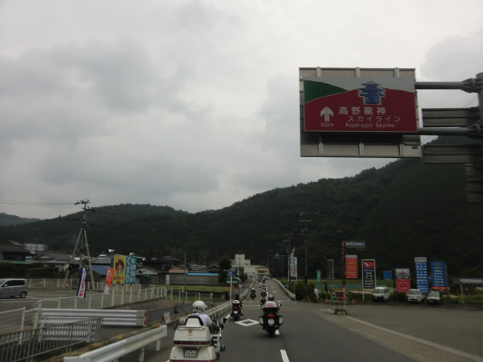 「高野龍神スカイライン 43キロ」の案内板が出ていた・・・R424。空の雲が気に掛る。