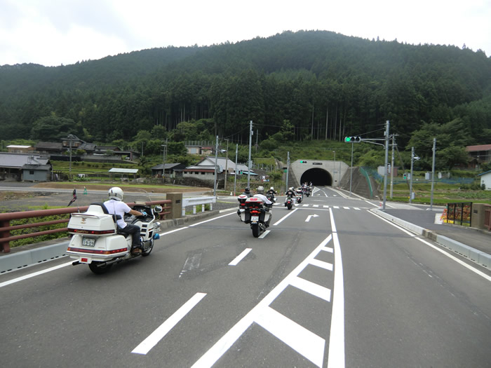 通行量が少なく、山のみどりの中に吸い込まれるようだ・・・日高川沿に快走。