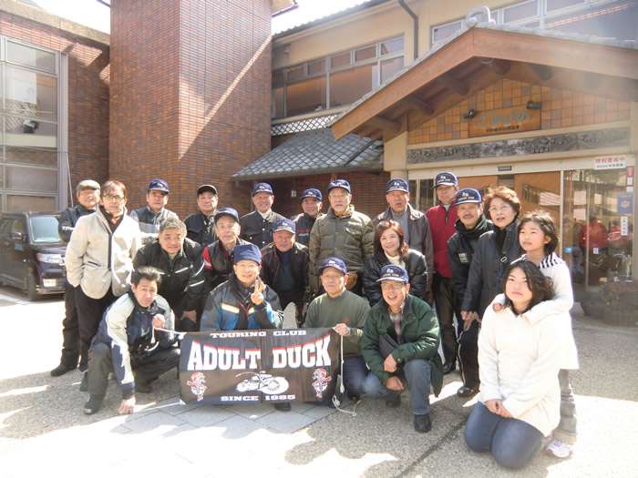 大山田温泉さるびの前で記念写真。am11:20到着。pm1:30出発です。 |