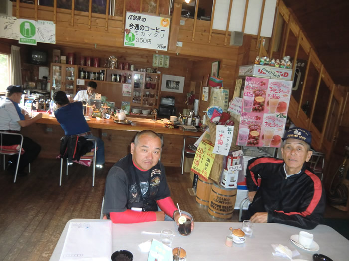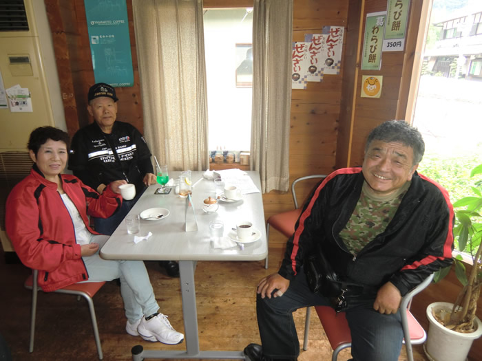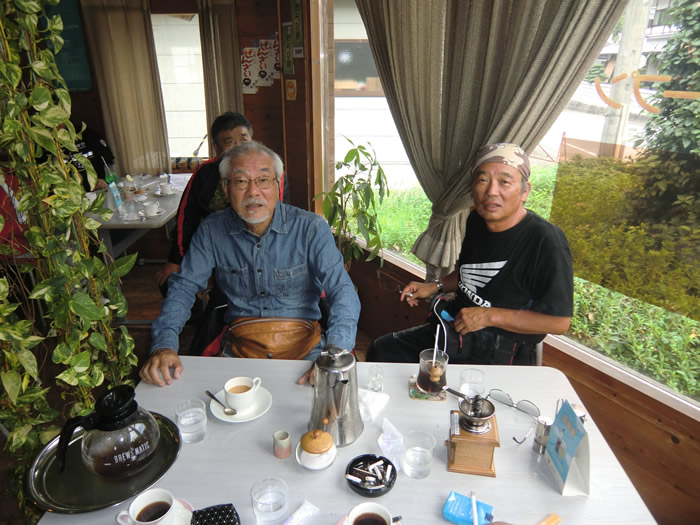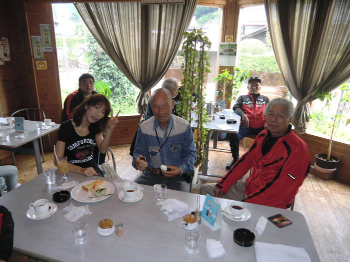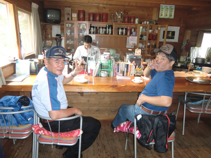 10:00am R169 吉野町楢井 喫茶店「凡句来」で山ちゃん、まっしゃんと合流。