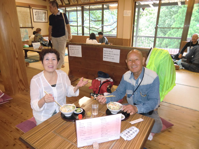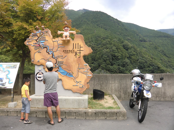 1:20pm 山鳩湯を出発。山とオフロードがマッチ・・・道の駅 杉の湯 川上にて。
