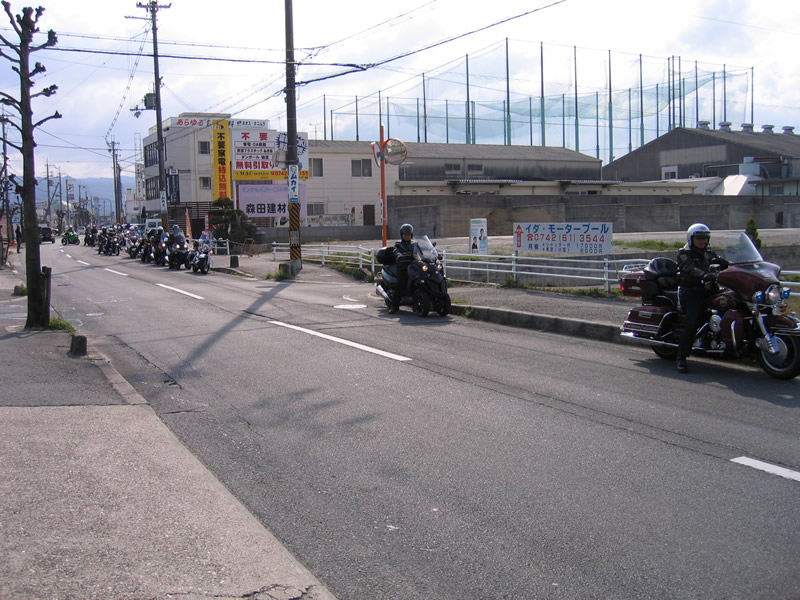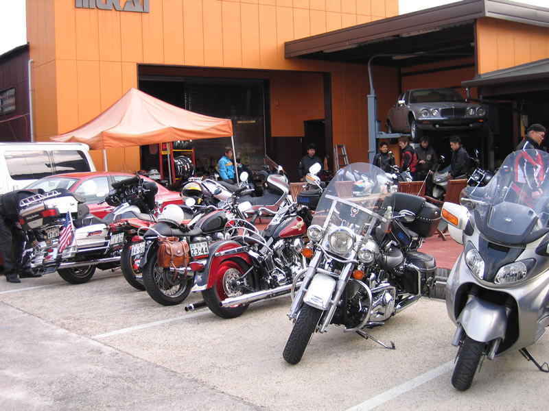 クレージーモーターワークスムカイ東九条店で集合・・ムカイさんのメンバーは12名、 アダルトは岩@・森@・橘@・JQQ・西@・奥@・新@・益@会長・名張の中@・竹やぶ・知多半島から早@・天川@の各メンバーが参加 リアバッグをバージョンアップのハーレーは・・JQQ
