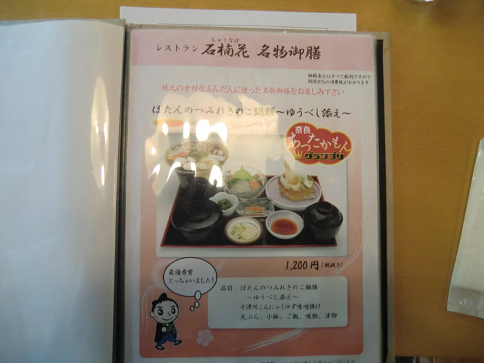 ホテル昴のレストラン石楠花で、石楠花名物御膳(1200円)を注文。