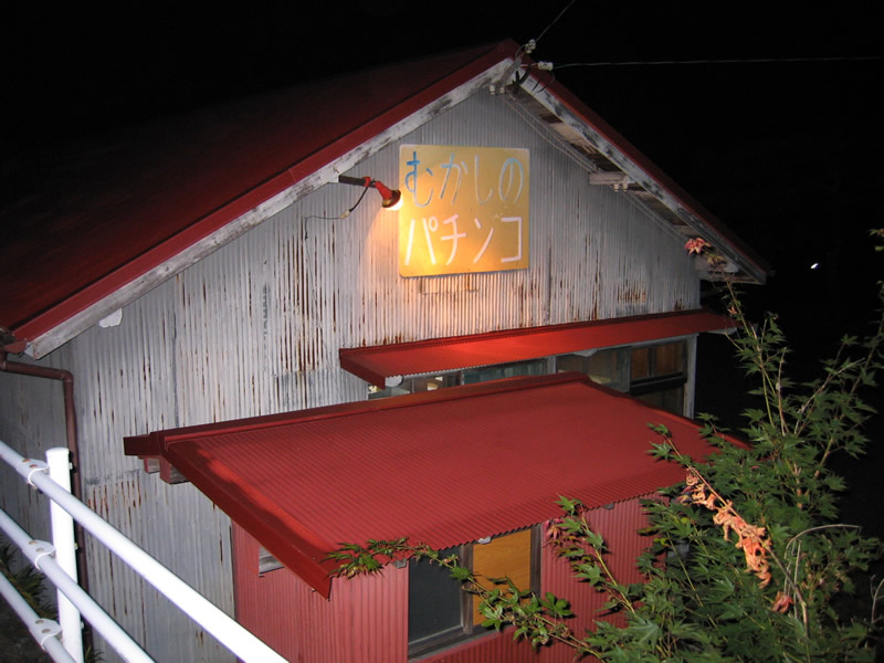食後、宿から坂を上ると「むかしのパチンコ」を発見 |