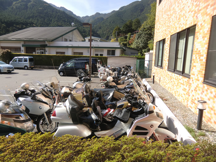 玄関前にずらりと駐車。GLの大型バイクが目立ってます。