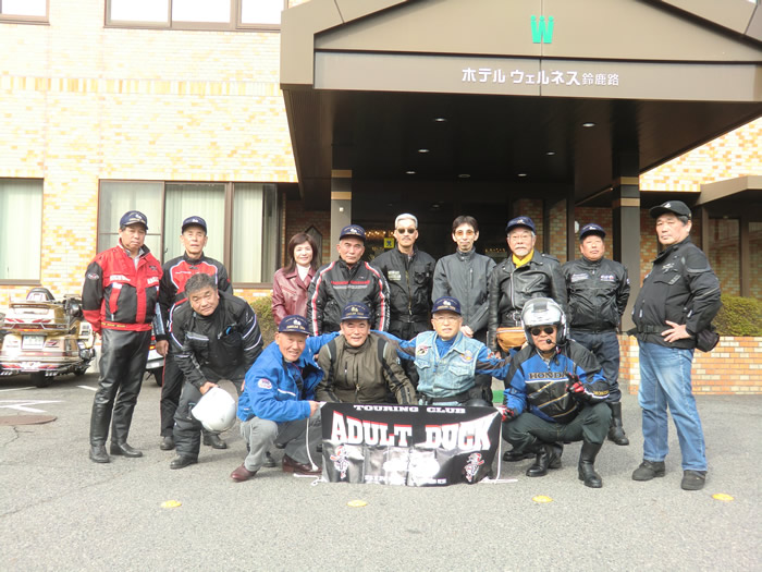 温泉は、良く温まりました。 ホテルウェルネス鈴鹿路前で記念写真。 pm 1:45出発。