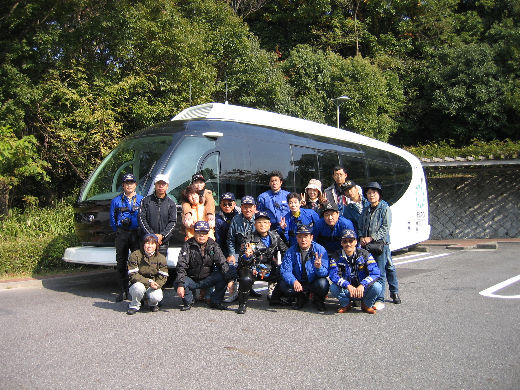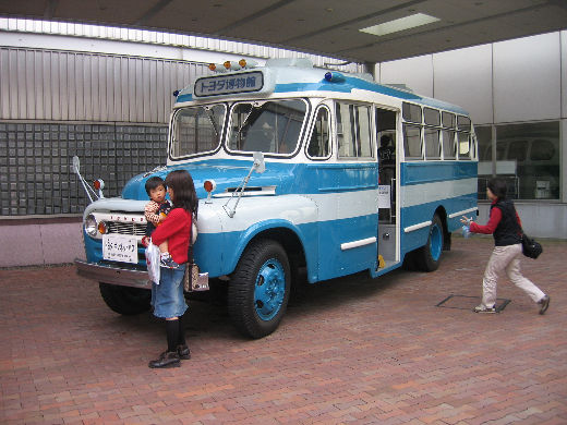 愛地球博で活躍した、バスの前で、アダルト・ダッ