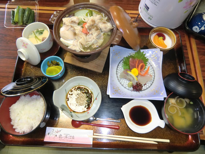 やなさん、昼食は、ヘルシーな地鶏鍋定食だ。1470円。まいう〜( ^)o(^ )!