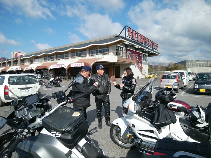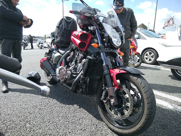 ![]() タンデムで初参加メンバーのVMAX1700 あいみさん、やなさんのGL1800にタンデムする. |