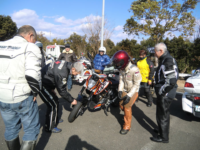 ともちゃんの250バイクのフロントタイヤのヒゲを見たヒゲの山