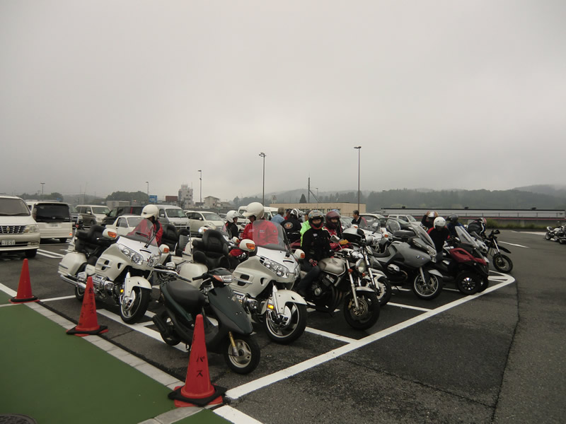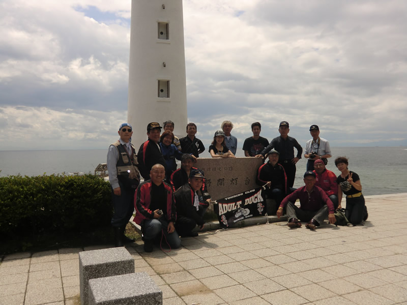 間野灯台の前に全車整列!先頭車は、早@さんの新車、CB1100! |