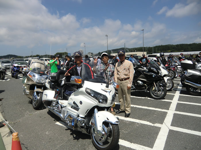 バイク達・・・暑いっ。 後方の山でお迎えの狼煙(のろし)?