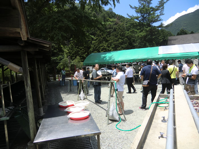 ふるさと村の広場では、どこかの団体さんが、流しそうめんの準備をしていた。