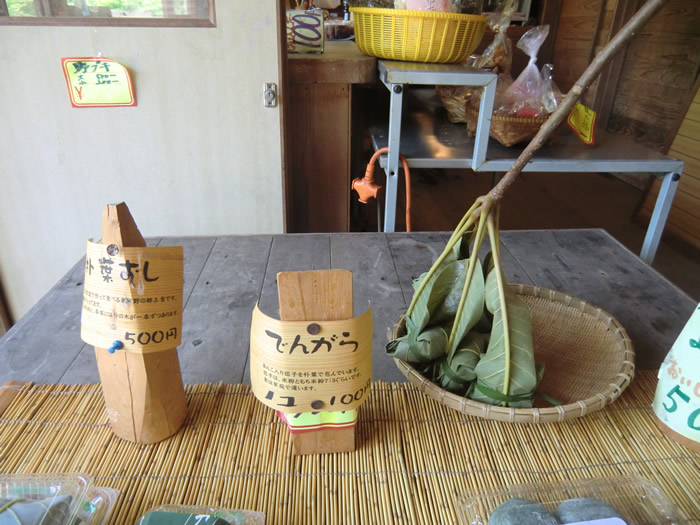 いた。 ホウバの葉にあんこ入りのだんごを包んで蒸した「でんがら」を買った。