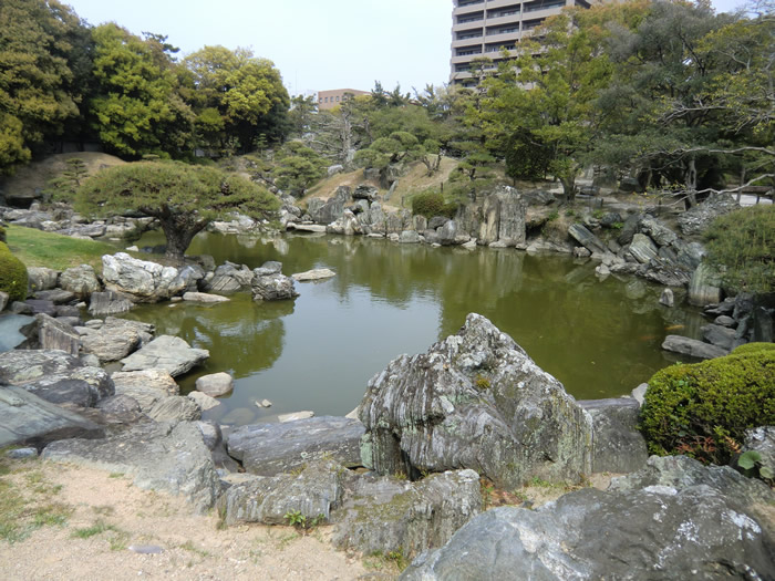 藩主に許可を得て青いしを採取、庭奉行が作庭した。 昭和41年実測調査を行った
