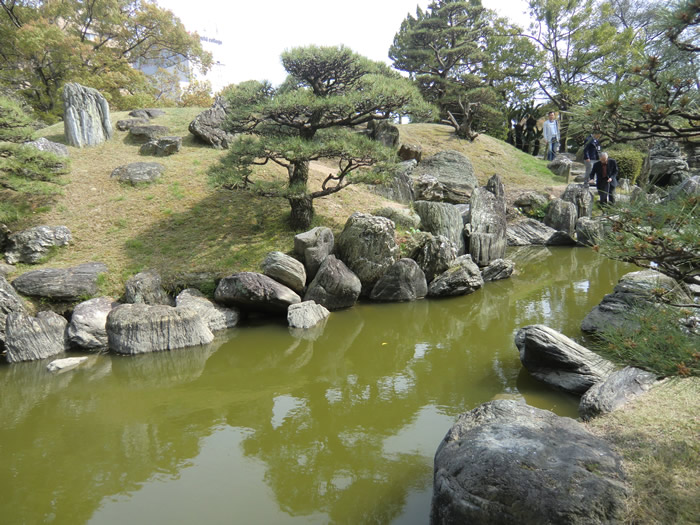 そして、旧徳島城表御殿庭園の全長 10.5M の青石橋に圧倒し、心字池の石組は