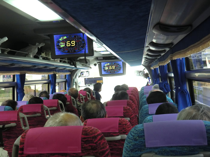 帰路のバスでは、恒例のビンゴが楽しい。 山本さん、南さんが、仲良く同時にオーラス