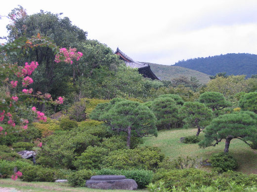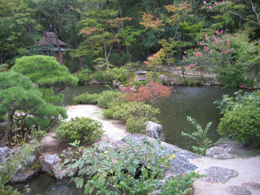 依水園の後園は、明治32年に、裏千家十二世及妙斎(ゆうみょうさい)が作り上げた庭と伝え られている。 東大寺南大門、若草山、春日奥山、御蓋山(みかさやま)を借景としてとりいれら れている。