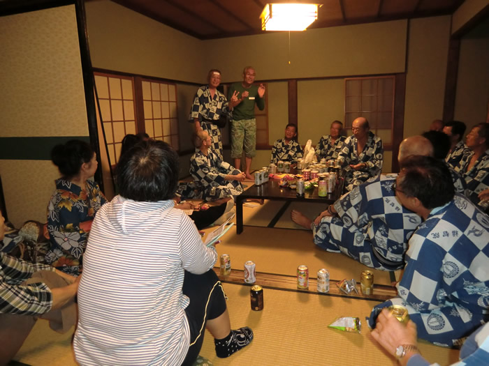 二次会は盛りあがりましたね。 初めてのお泊りで重森三玲作庭
