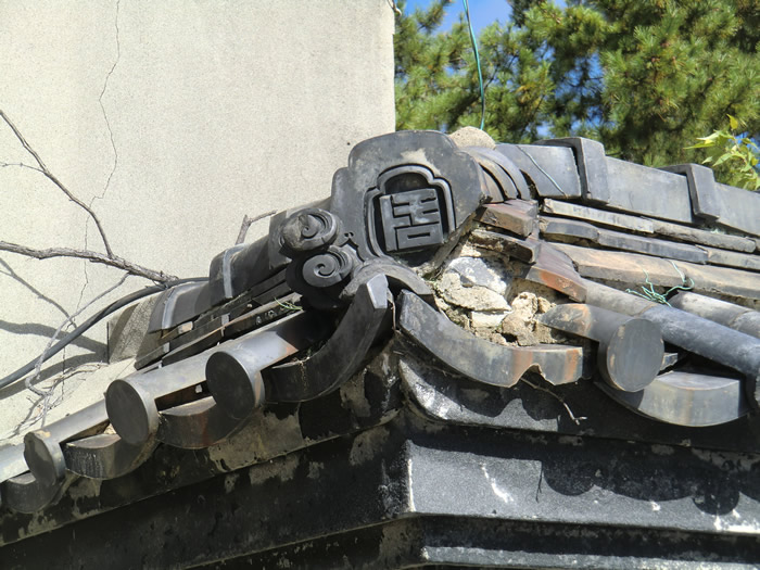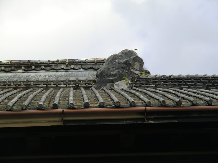 主屋の鬼瓦は斜めになっている。 これは伊勢神宮の方向に向