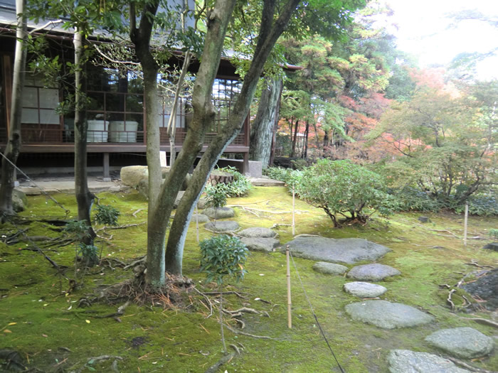 角の延段は、茶室への案内矢印を表わしているとのこと。